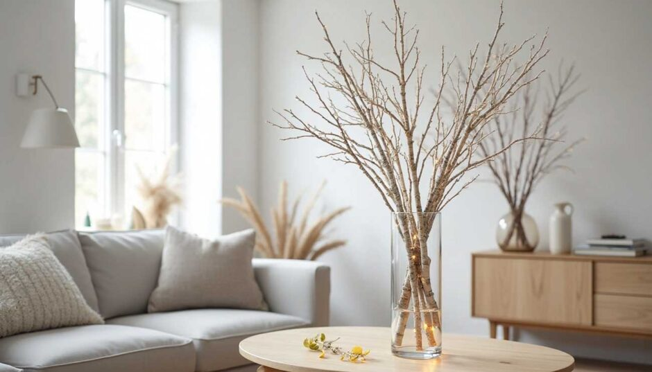 Tall branches work best in the living room because they draw attention and make the space feel bigger.